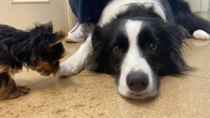 先日庭にセミの抜け殻を見つけたので2匹に見せたところプードルのモナは興味津々、手でちょんちょんしたりくんくん匂いを嗅いだりしていましたが、ヨーキーのリナは興味はあるけれど怖いのかビクビクしながら近づいたと思ったら急に飛び跳ねて後ずさり!!?